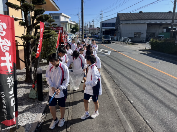 つわぶきマラソンが行われるにあたって中学生全員でゴミ拾いを行いました!毎年恒例ですが、一生懸命ゴミを拾う姿を見ていい活動だなと実感しています。中学生良く頑張りました!