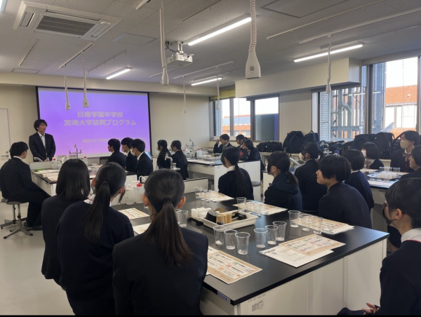 中学3年生が宮崎大学に体験授業を行いました。「花の色素でセンサーを作る」「CD‐R光の正体を暴く」「プログラミング体験」の三つをしていただきました。すごく楽しそうで、有意義な時間になったと思います。将...