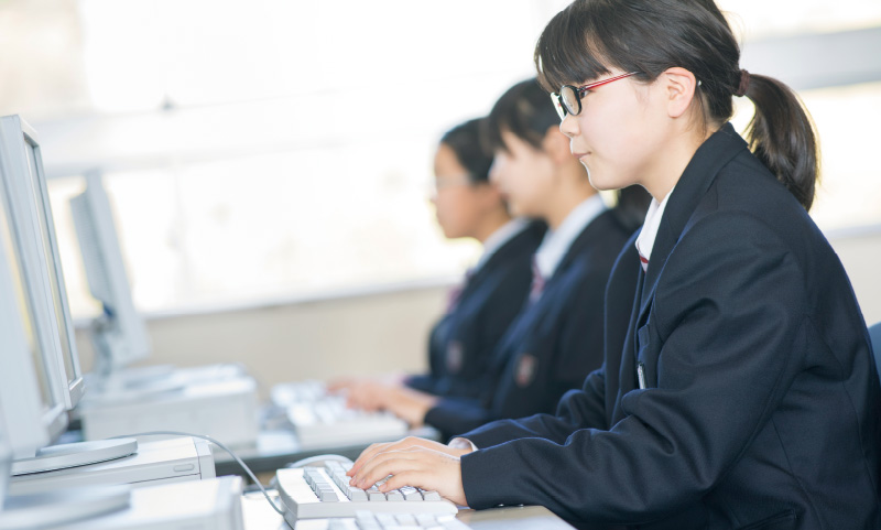 D棟5階: 90台のパソコンがあります。中学1年生から情報教育にも力を入れています。